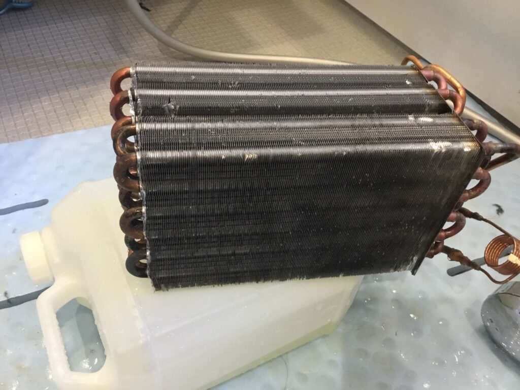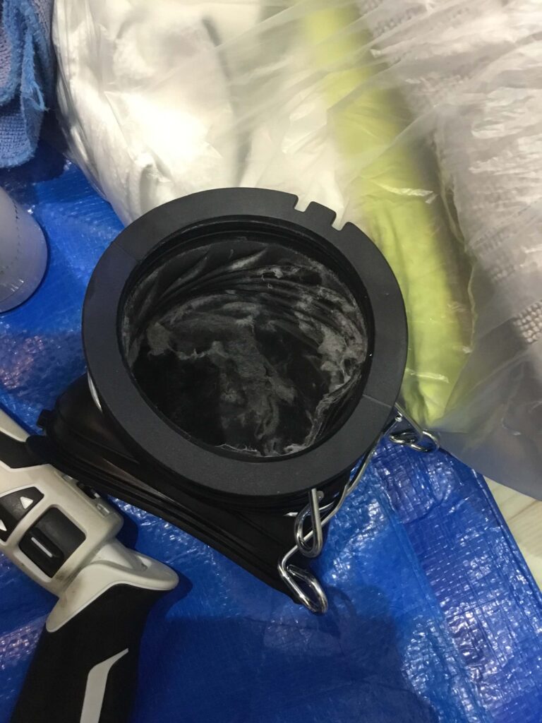 これが乾燥フィルターを外したところの手前から下へ続くダクトです。このすぐ下のところに絵筆の先は落ちていました。無事救出しました。