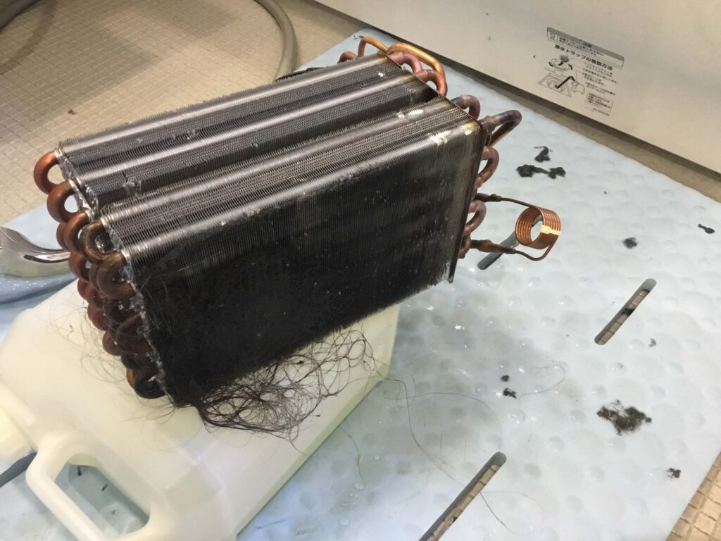 パナソニック製は温風を作るためのエバポレーターが上にあって、本体を動かさなくてもこのように取り出して洗えるのがよいところです。