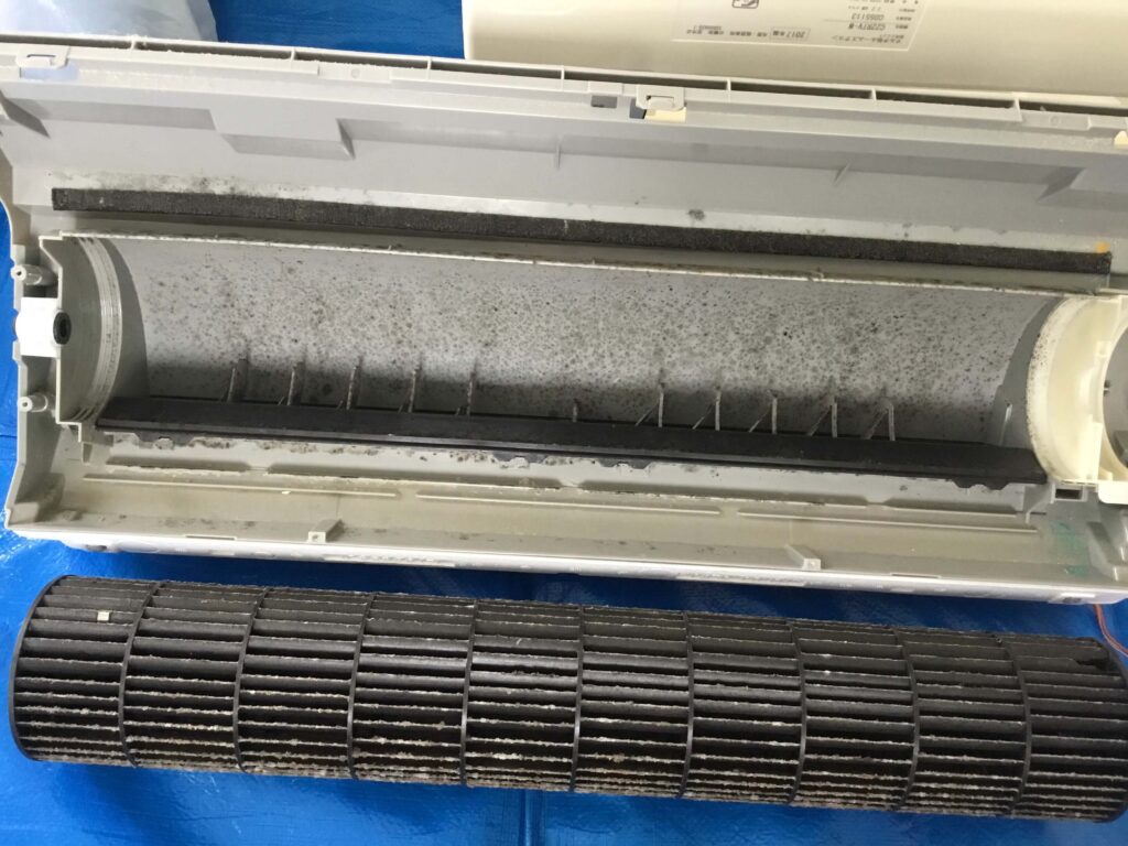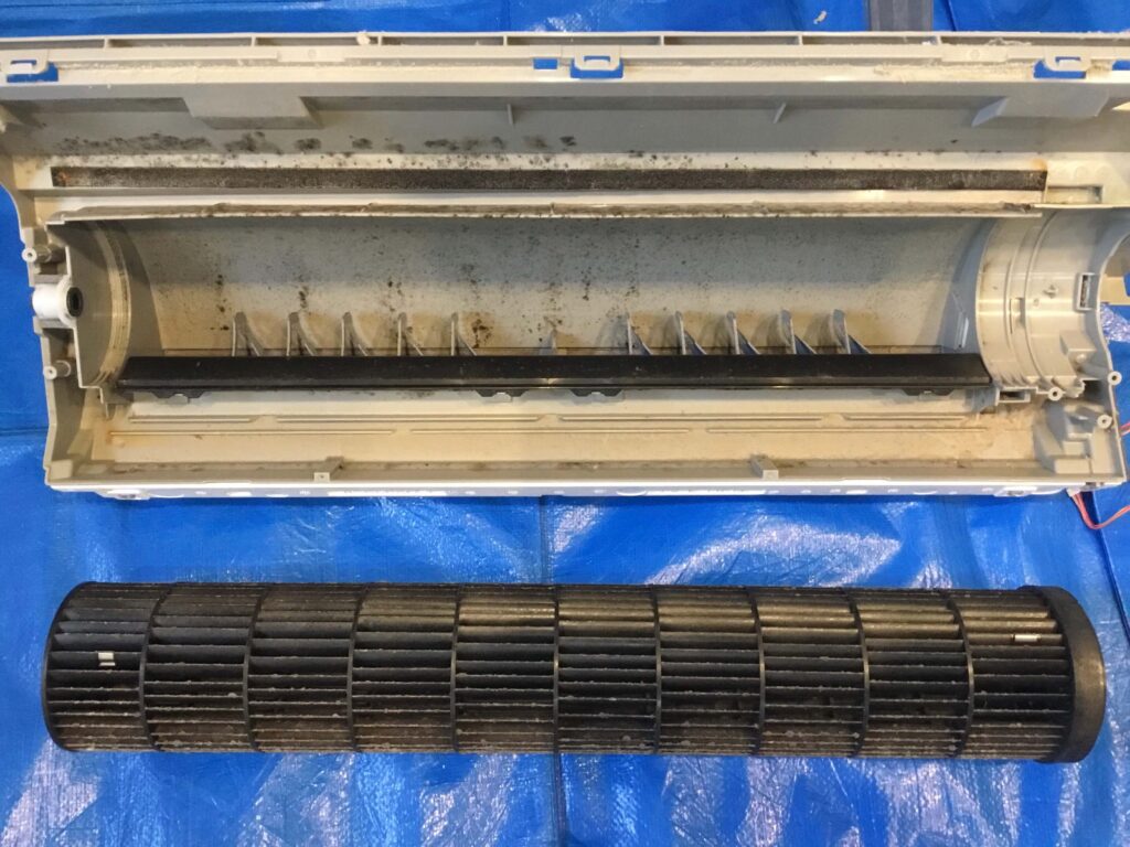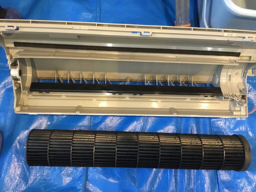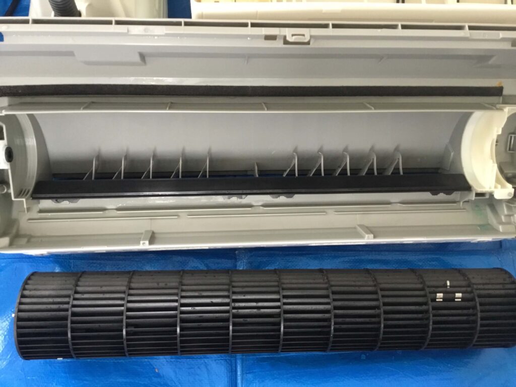 作業後に、お客様から「分解クリーニングにしてよかった。クリーニングするならこれしかない」というお言葉をいただきました。特に気管支が弱い方ですと、少しでもカビが残っていると、やはり症状が出てしまいます。ですので完全にばらばらにしてすみずみまで洗える壁掛けオーバーホール(背抜き)はお勧めです。基板ボックスやモーターを外して洗うので、水濡れによる故障というのが起こりえない、というメリットもあります。作業金額は少し高めで、作業時間もかかりますが、ぜひこのメリットを実感していただきたいと思います。