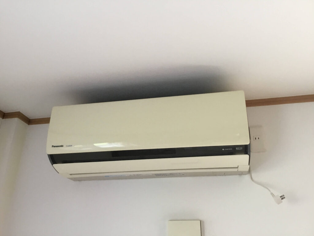 また、こちらは壁から降ろして分解クリーニングをした後に別の部屋へ移設します。そのために友人の空調工事士に一緒に来てもらいました。空調工事士によると、移設も通常は10年を超えたものは施工しない、ということでした。移設した後に動かなくなることがあるからだそうです。その点もご了承いただいてから作業に入ります。