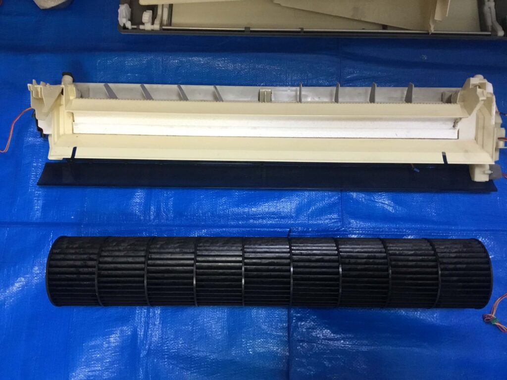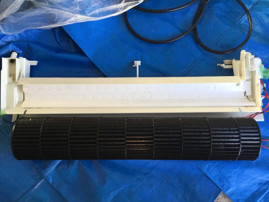 ようやく普通のエアコンになりました。ここからさらにドレンパンを外し、ファンを抜きます。
