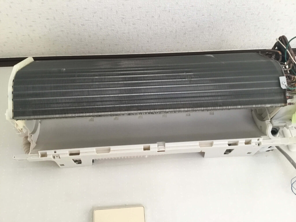 リビング設置ということもあり、こちらはかなりホコリとカビで汚れていました。